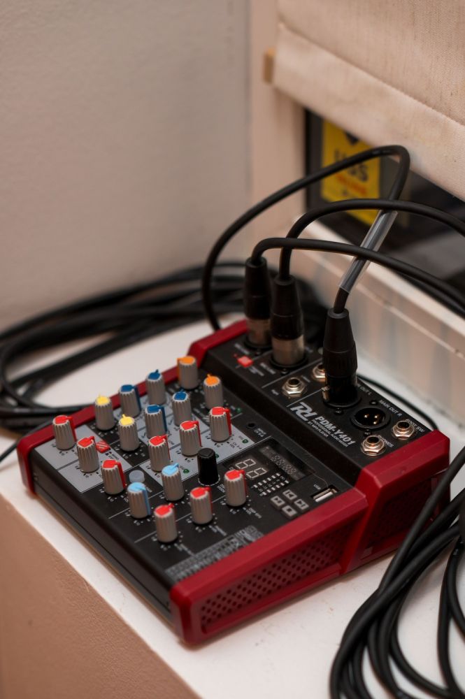 В помещении установлены две активные колонки JBL EON 15, обеспечивающие чистое и мощное звучание.