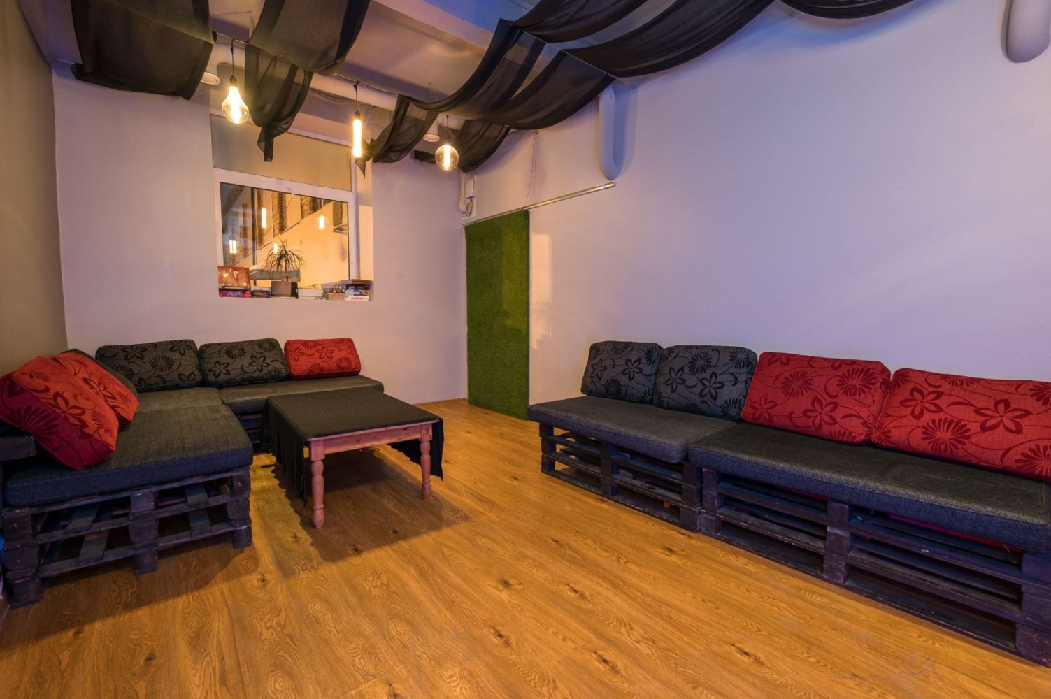 10 двухместных диванов, 12 высоких барных стульев, 4 длинных стола 1800×750x720 мм (часто используемых для мастер-классов), 3 журнальных низких стола и 2 круглых фуршетных стола.