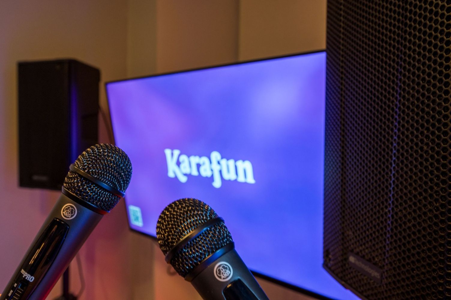 Проектор, микрофоны, звук, караоке, кикер, посуда